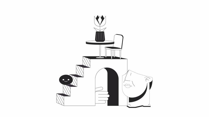 Abstract staircase bw loading animation. Mystical architecture. Ladder abstract outline 2D cartoon composition 4K video loading motion graphic. Achievement, unrealistic animated gif isolated on white Pro Video