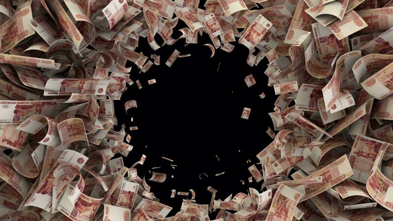 Dynamic Russian Ruble money bills transition from the edges to the middle and from the middle to the edge Pro Video