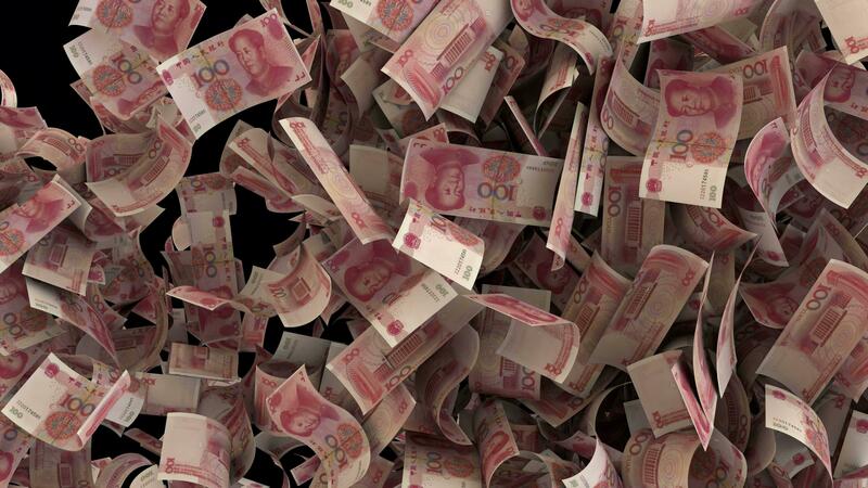 Dynamic chinese yuan money bills transition from the side and exploding Pro Video