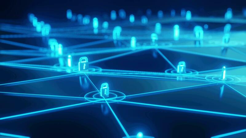 Animation of padlock with circuit board pattern and bar graph with red abstract pattern. digitally generated, hologram, report, data, cyber security, technology and finance concept. Pro Video