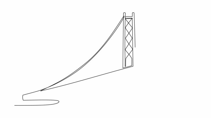 Animated self drawing of single continuous line draw for bridge structure. architechtural design concept for bridge and building. Building icon animation. Full length one line animation. Free Video