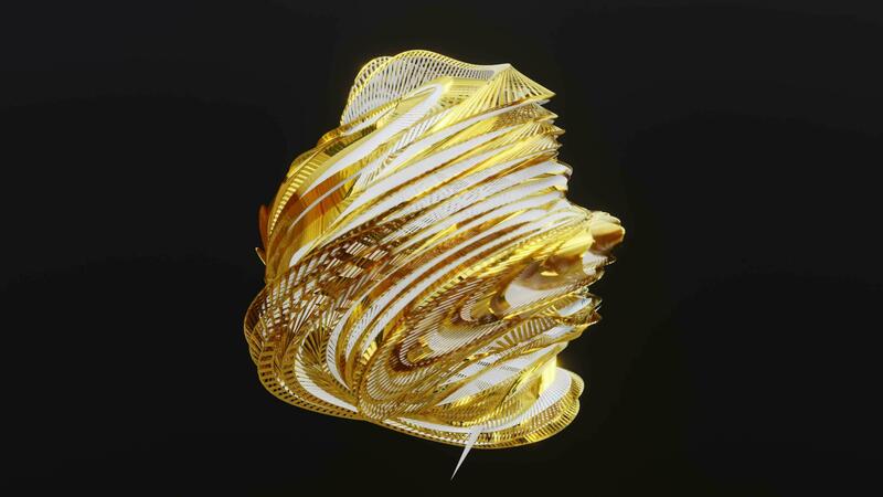3d render, Abstract shape with wire mesh gold colors on black background, wire mesh deformed looping animation background Free Video