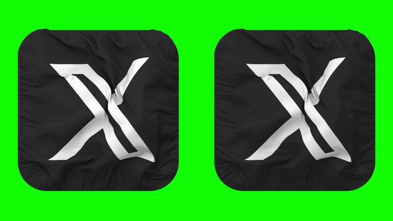 Twitter X Logo Flag Icon in Squire Shape Isolated with Plain and Bump Texture, 3D Rendering, Green Screen, Alpha Matte