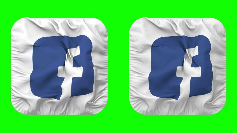 Facebook, FB Flag Icon in Squire Shape Isolated with Plain and Bump Texture, 3D Rendering, Green Screen, Alpha Matte