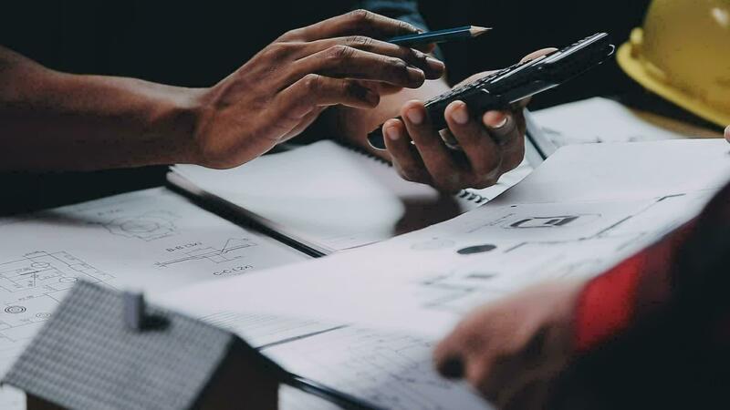 Engineer Teamwork Meeting, Drawing working on blueprint meeting for project working with partner on model building and engineering tools in working site, Construction and structure concept. Pro Video