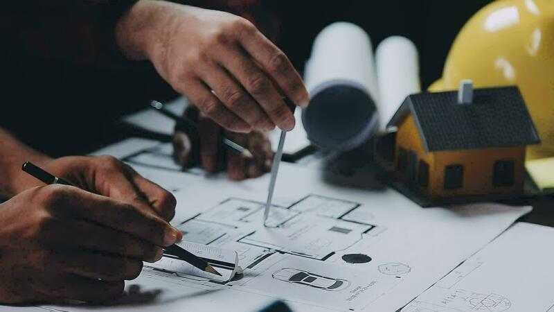 Engineer Teamwork Meeting, Drawing working on blueprint meeting for project working with partner on model building and engineering tools in working site, Construction and structure concept. Pro Video