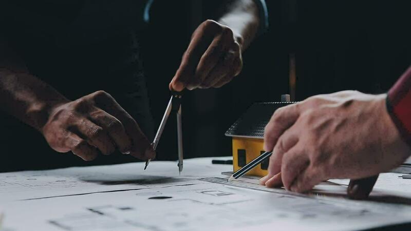 Engineer Teamwork Meeting, Drawing working on blueprint meeting for project working with partner on model building and engineering tools in working site, Construction and structure concept. Pro Video