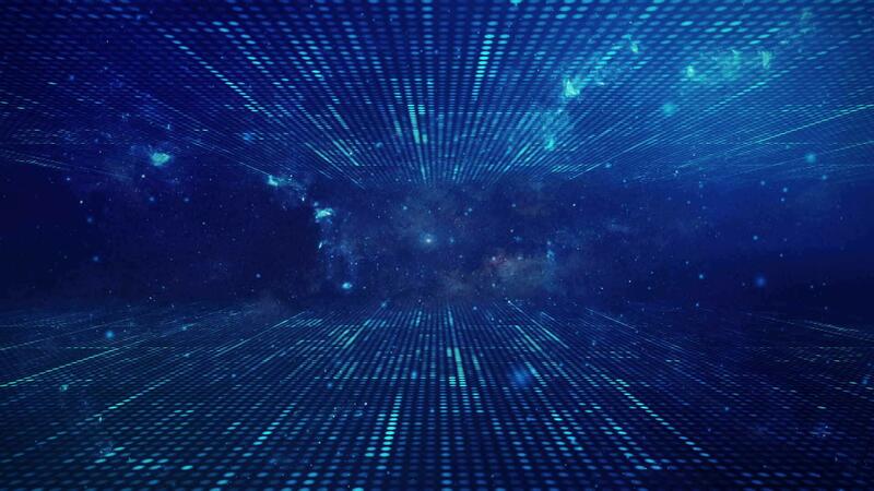 A glowing blue grid network of blinking digital data lights and floating particles. Connectivity and connections concept technology motion background animation. Pro Video