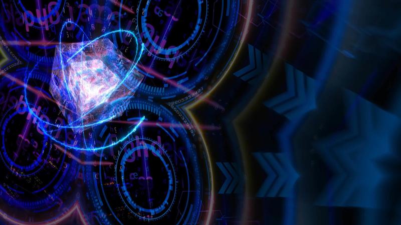 cube and atom energy moving and quantum futuristic technology computer with digital matrix and laser Free Video
