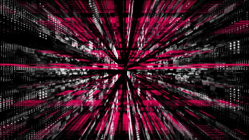 Magenta red and white floating particles in digital technologic 3d cyberspace blurry background Free Video