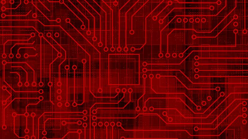 Red Computer chip with connections and signals. AI Computer processor background. Mother board circuit pattern background Free Video
