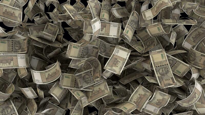 Dynamic Indina Rupee money bills transition from the top and than exploding Pro Video