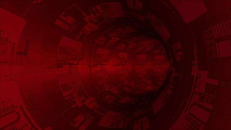 Animated red sci-fi circular tunnel with electronic circuit board texture on surface background Free Video