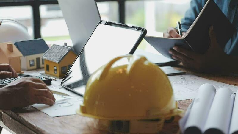 Image of team engineer checks construction blueprints on new project with engineering tools at desk in office. Free Video