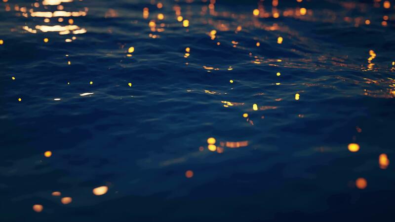 Loop animation of rippled lake with glowing particles, 3d rendering. Pro Video