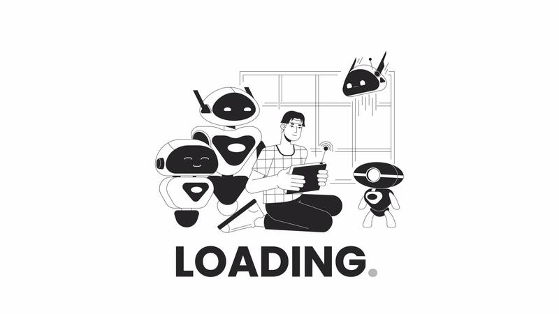 STEM robotics bw loading animation. Asian robotic engineer operates robots outline 2D cartoon character 4K video loader motion graphic. Technology engineering animated gif isolated on white background Pro Video