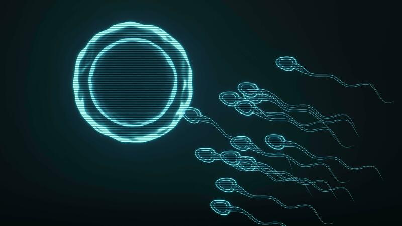 Holographic image of sperm and egg cell, futuristic element, 3d rendering. Pro Video