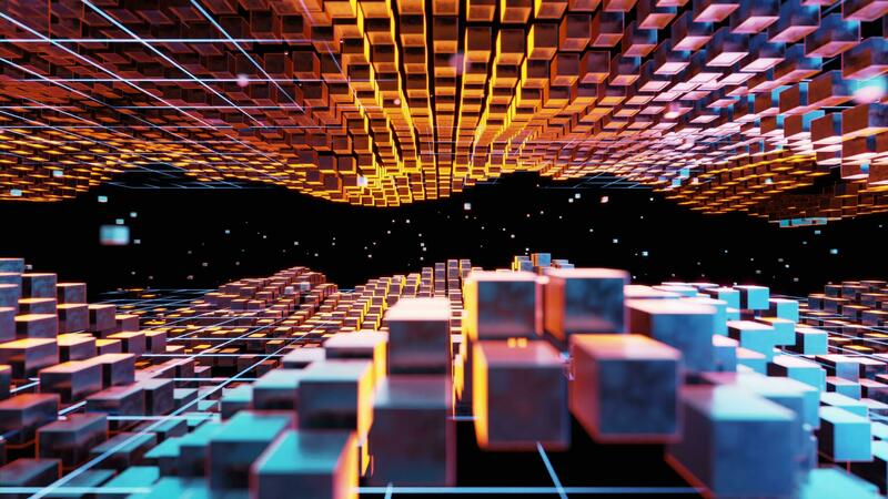 Cubic cyberpunk space, conceptual geometry background, 3d rendering. Pro Video