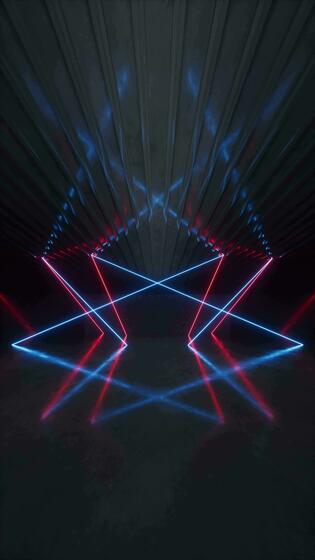 Dark room with glowing neon lines, loop animation, 3d rendering. Pro Video