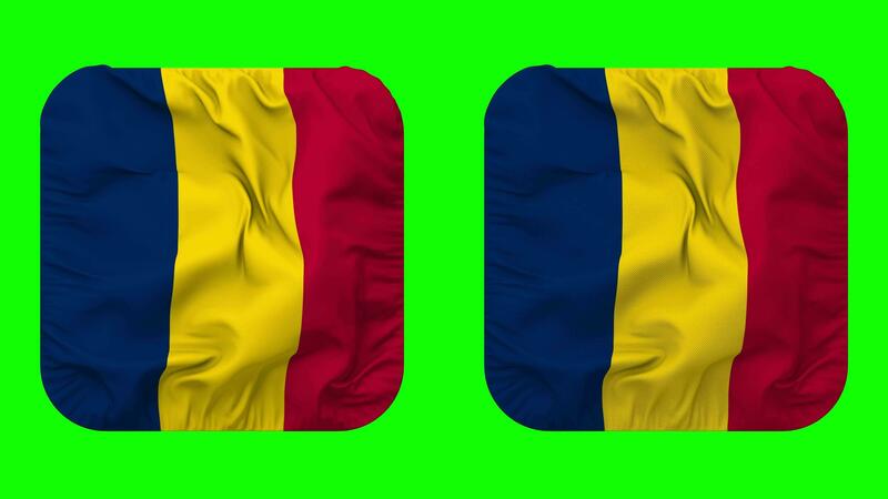 Chad Flag in Squire Shape Isolated with Plain and Bump Texture, 3D Rendering, Green Screen, Alpha Matte Free Video