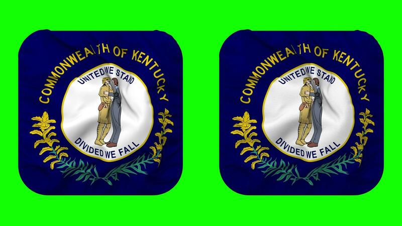 State of Kentucky Flag in Squire Shape Isolated with Plain and Bump Texture, 3D Rendering, Green Screen, Alpha Matte Free Video