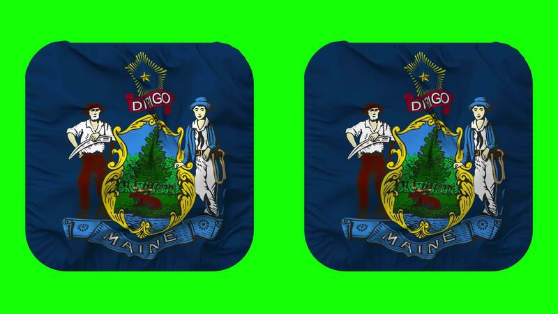 State of Maine Flag in Squire Shape Isolated with Plain and Bump Texture, 3D Rendering, Green Screen, Alpha Matte Free Video