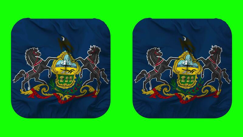 State of Pennsylvania Flag in Squire Shape Isolated with Plain and Bump Texture, 3D Rendering, Green Screen, Alpha Matte Free Video