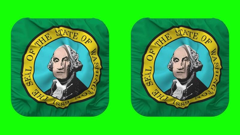 State of Washington Flag in Squire Shape Isolated with Plain and Bump Texture, 3D Rendering, Green Screen, Alpha Matte Free Video