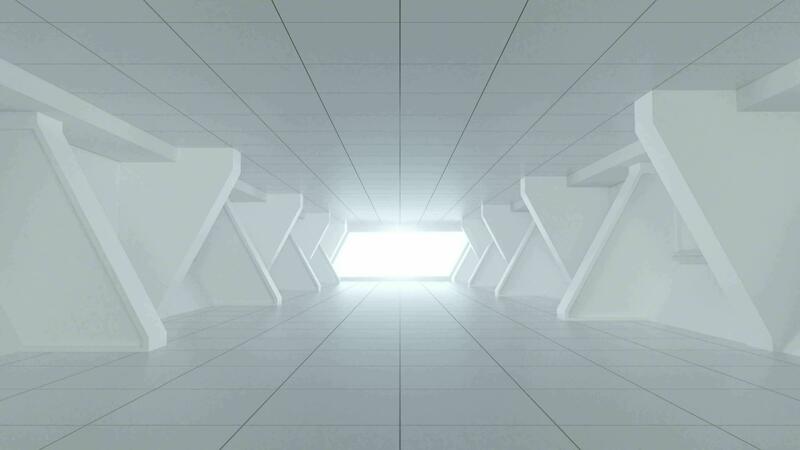 Going forward in white tunnel with light in the end, 3d rendering. Pro Video