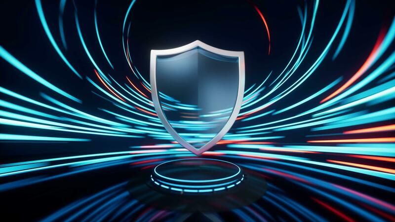 Shield with spin lines effect background, 3d rendering. Pro Video