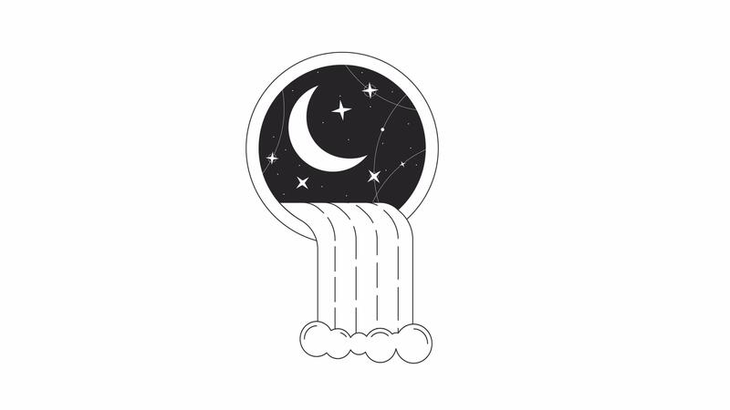 Surreal waterfall coming through window bw outline 2D concept animation. Fantasy world overflow monochrome linear cartoon 4K video. Moon, blinking stars animated object isolated on white background Pro Video