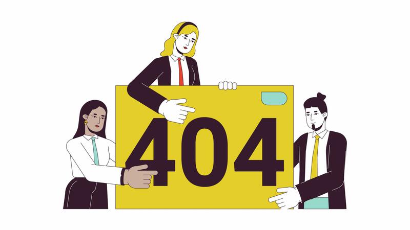 Failed presentation 404 error animation. Bad teamwork error message gif, motion graphic. Workplace disagreement. Businesspeople animated cartoon line characters 4K video isolated on white background Pro Video