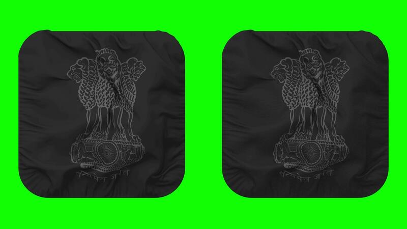 India Emblem Flag in Squire Shape Isolated with Plain and Bump Texture, 3D Rendering, Green Screen, Alpha Matte Free Video