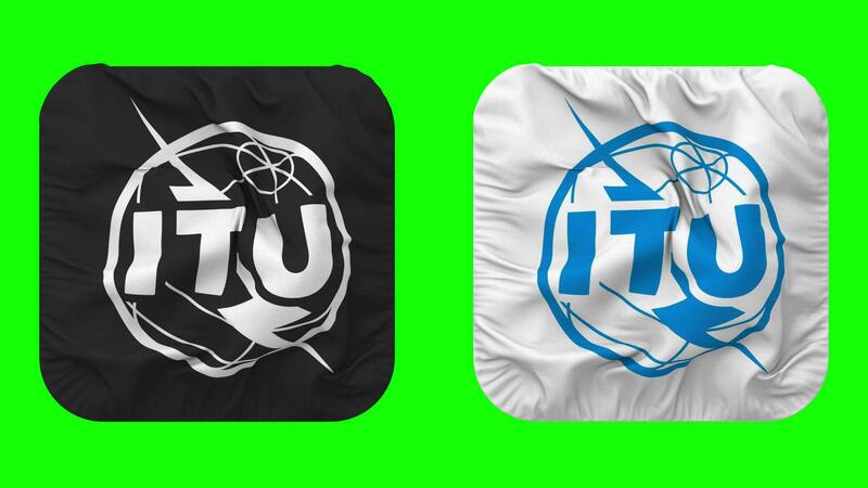 International Telecommunication Union, ITU Flag in Squire Shape Isolated with Plain and Bump Texture, 3D Rendering, Green Screen, Alpha Matte