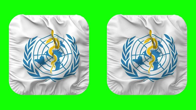 World Health Organization, WHO Flag in Squire Shape Isolated with Plain and Bump Texture, 3D Rendering, Green Screen, Alpha Matte