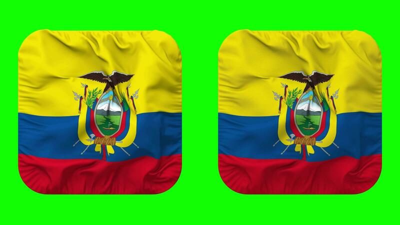 Ecuador Flag in Squire Shape Isolated with Plain and Bump Texture, 3D Rendering, Green Screen, Alpha Matte Free Video