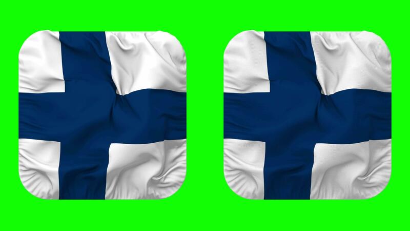 Finland Flag in Squire Shape Isolated with Plain and Bump Texture, 3D Rendering, Green Screen, Alpha Matte Free Video