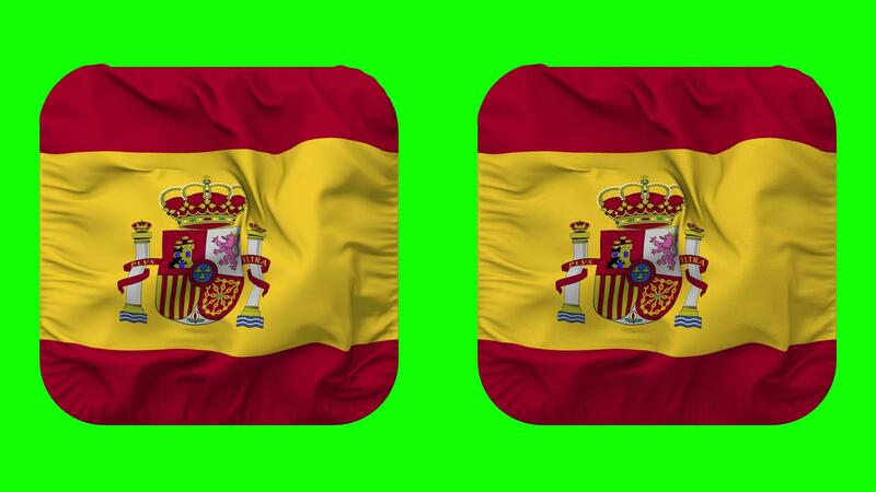 Spain Flag in Squire Shape Isolated with Plain and Bump Texture, 3D Rendering, Green Screen, Alpha Matte Free Video