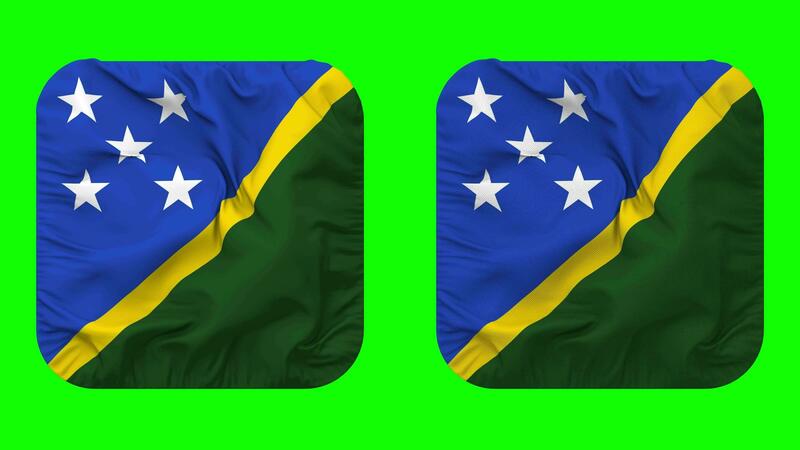 Solomon Islands Flag in Squire Shape Isolated with Plain and Bump Texture, 3D Rendering, Green Screen, Alpha Matte Free Video