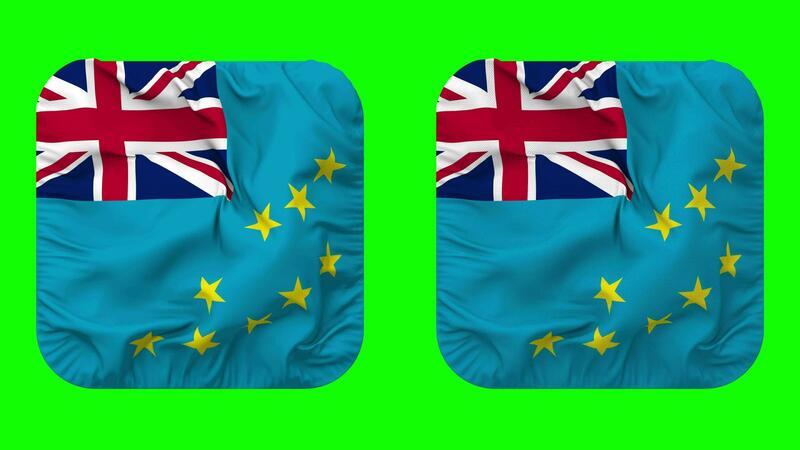 Tuvalu Flag in Squire Shape Isolated with Plain and Bump Texture, 3D Rendering, Green Screen, Alpha Matte Free Video