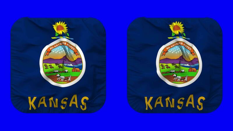 State of Kansas Flag in Squire Shape Isolated with Plain and Bump Texture, 3D Rendering, Green Screen, Alpha Matte Free Video