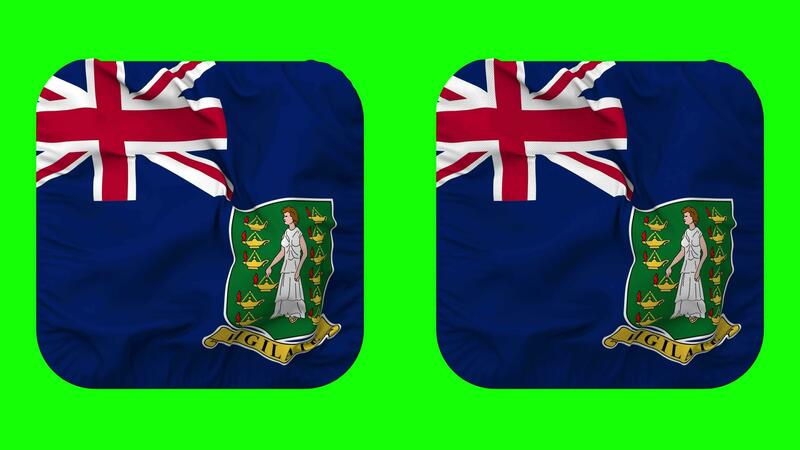 British Virgin Islands, BVI Flag in Squire Shape Isolated with Plain and Bump Texture, 3D Rendering, Green Screen, Alpha Matte Free Video