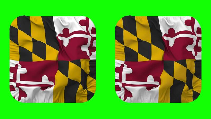 State of Maryland Flag in Squire Shape Isolated with Plain and Bump Texture, 3D Rendering, Green Screen, Alpha Matte Free Video