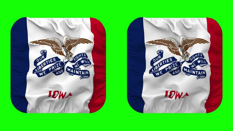 State of Iowa Flag in Squire Shape Isolated with Plain and Bump Texture, 3D Rendering, Green Screen, Alpha Matte Free Video