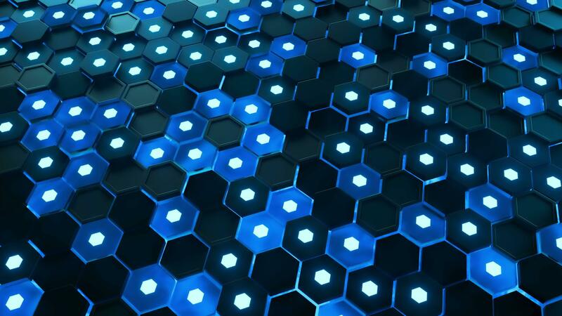 Glowing hexagonal cubes background, hi-tech cyberspace, 3d rendering. Pro Video