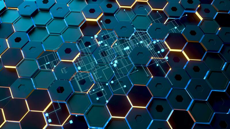 Glowing hexagonal cubes background, hi-tech cyberspace, 3d rendering. Pro Video