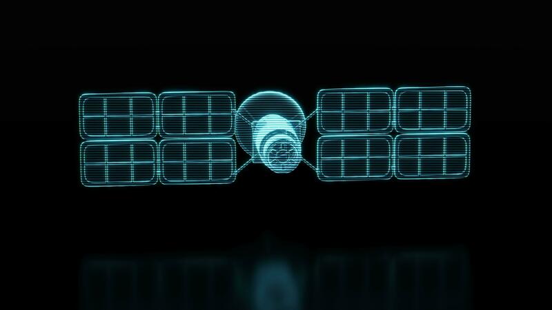 Loop rotation of artificial satellite with hologram figure, 3d rendering. Pro Video