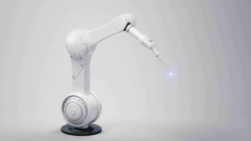 Loop animation of mechanical arm with white background, 3d rendering. Pro Video