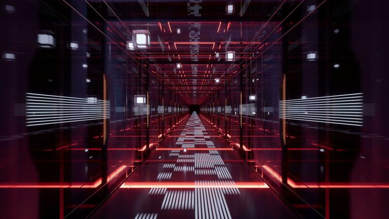 Going forward in digital cyberspace, sci-fi concept tunnel, 3d rendering. Pro Video