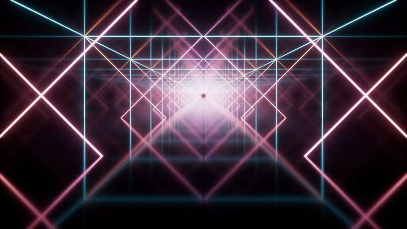 Loop animation in glowing neon lines tunnel, 3d rendering. Pro Video